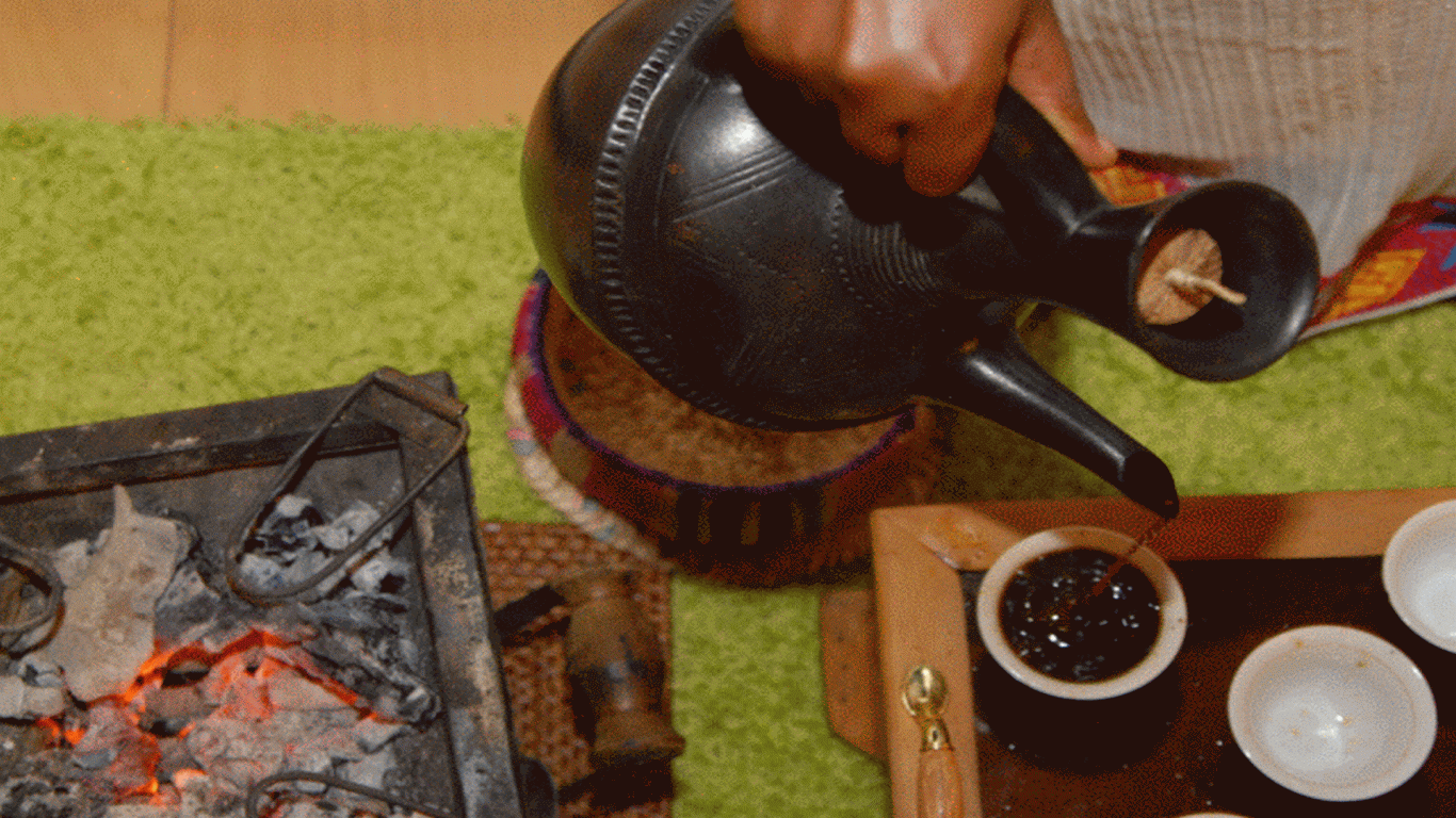 • Wir laden Sie für eine äthiopische Kaffeezeremonie ein.