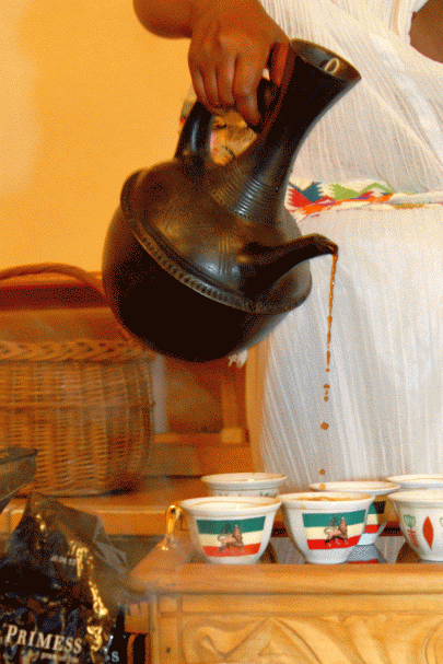 • Haben Sie gewusst, dass Äthiopien die Heimat des Kaffee ist? Der Name selbst  stammt von der Provinz Kaffa im Südwesten des Landes, wo der Kaffee noch wild wächst.Wir bieten eine taditionelle äthiopische Kaffeezeremonie in Bern