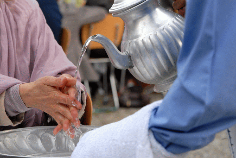 Bei uns im äthiopischen Restaurant bringen wir Ihnen Handwaser am Tisch. Hände waschen und Äthiopisch essen.